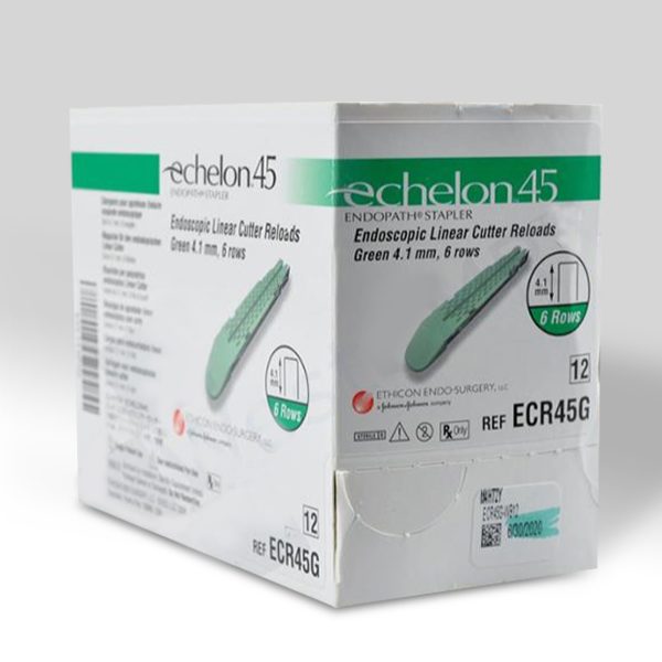 Echelon Endopath Staplers are sterile, single-patient-use instruments that deliver staples while simultaneously dividing tissue between rows. The Echelon Staplers are offered with staple cartridge lengths of 60mm and 45mm, and come in long or compact shaft lengths.